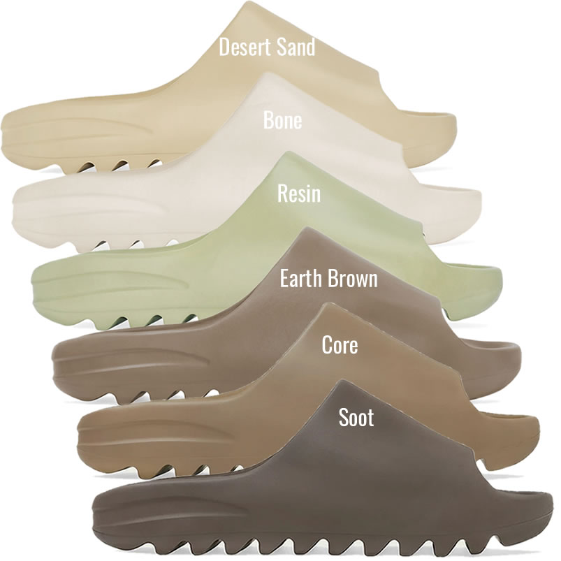 adidas Yeezy Slide "Ochre / Onyx / Pure/ Glow Green / Soot / Core / Earth Brown / Resin / Bone / Desert Sand" Retail