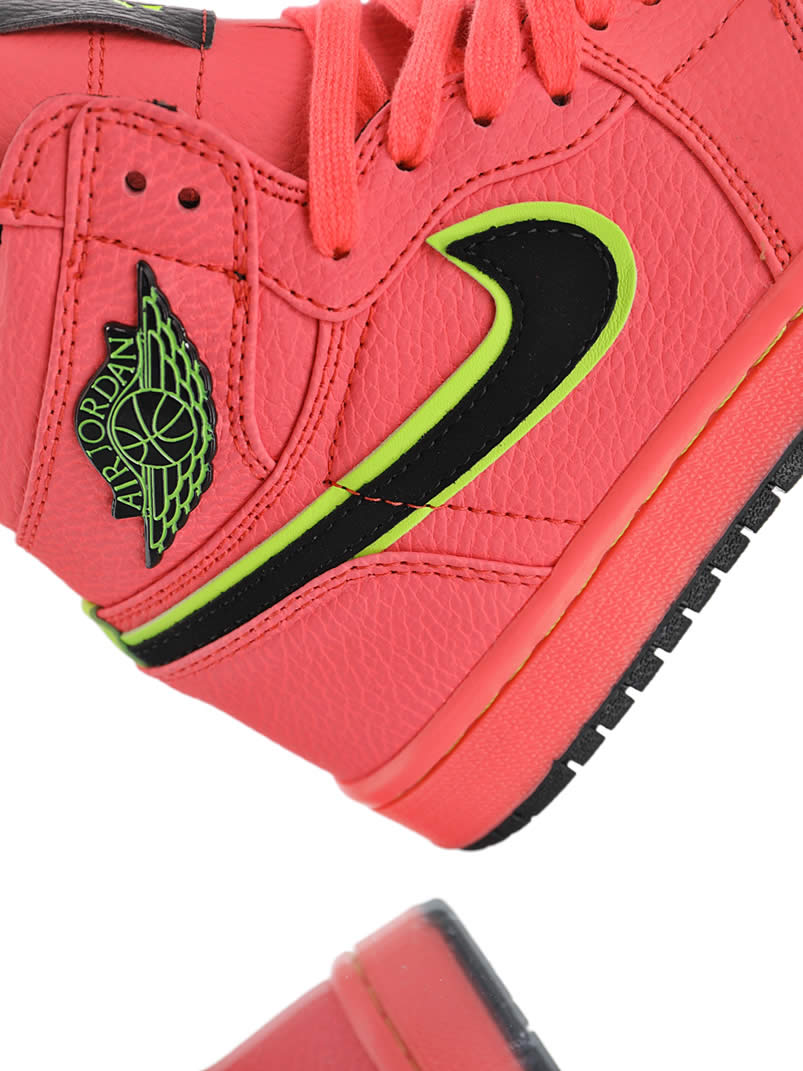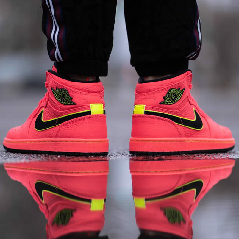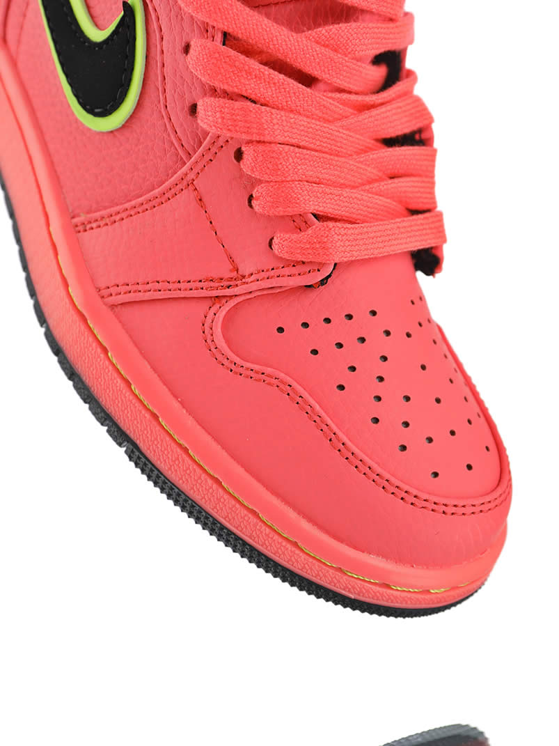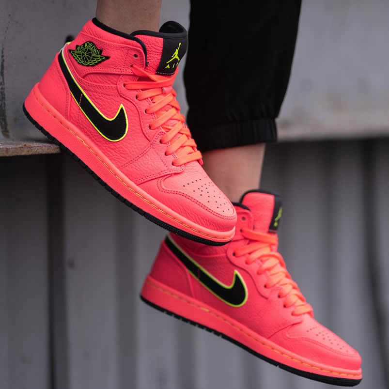 The color scheme of Air Jordan 1 Retro Premium "Hot Punch" Pink is still bright and eye-catching. This new Air Jordan 1 "Hot Punch" is dominated by pink, unique and eye-catching. The high quality lychee leather upper has an unforgettable texture. Black Swoosh and Flying Wing logo The edges are outlined in yellow, which brightens the overall tone and makes the shoes more youthful.