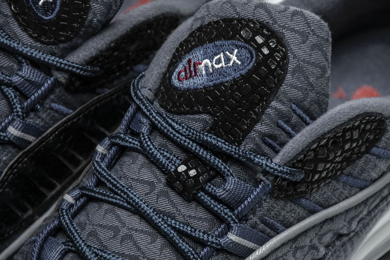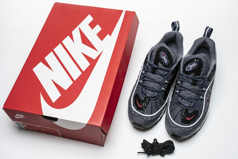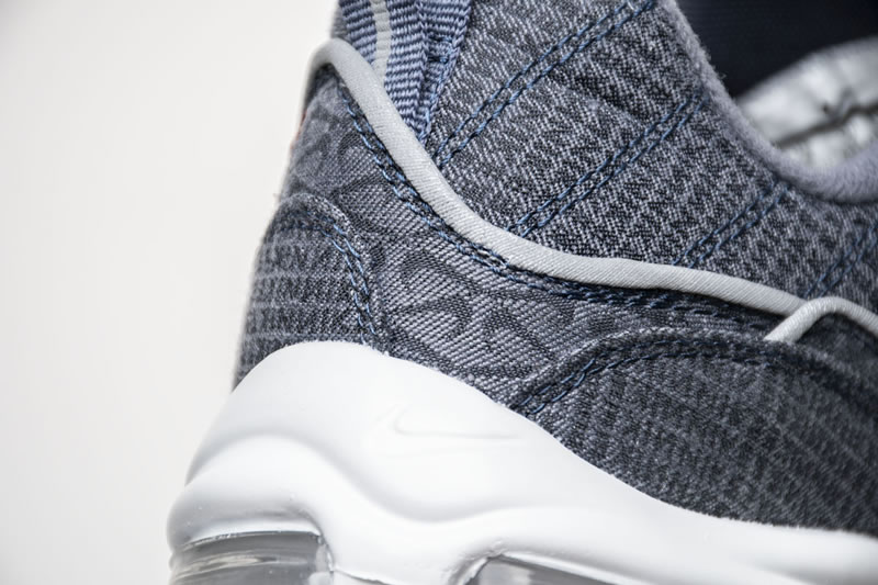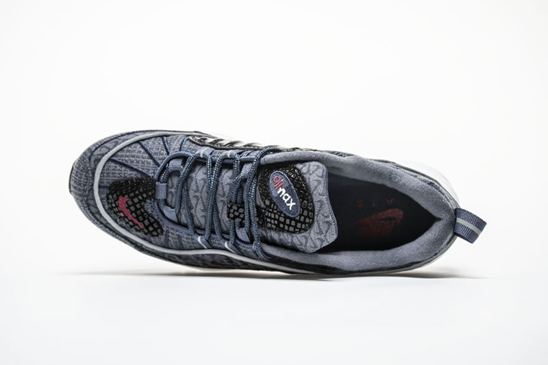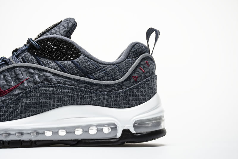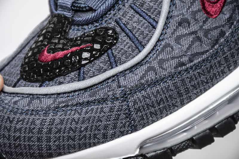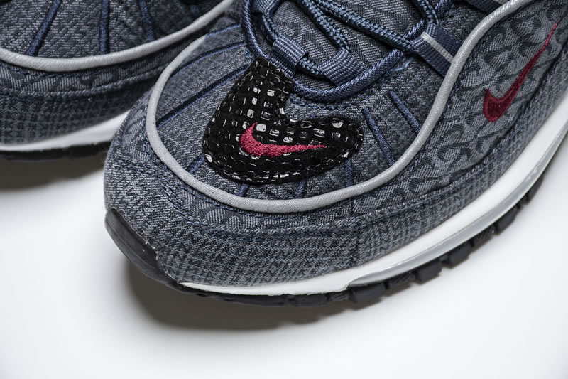 The Air Max 98. Much like the Air Max Plus, the 98 is celebrating an anniversary in 2018 which should lead to a dramatic uptick in releases. If that uptick continues to bring drops that are anything like this upcoming “Thunder Blue” offering, Air Max fans will have plenty to be excited about. Dressed in a denim-like thunder blue upper, with team red Nike branding, this selection comes equipped with some textured black patches that add a unique twist to this model. Another design feature of note are the haphazardly emblazoned miniature Swooshes that make their way underneath the prominent red Swoosh on the middle side panel as well as on the tongue unit.